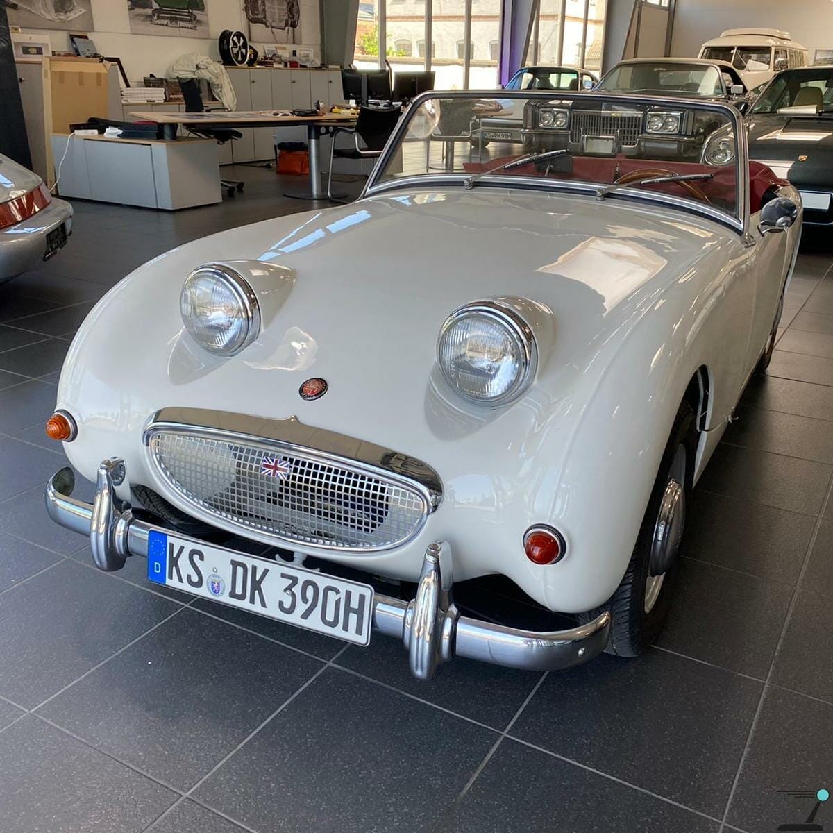 Dieser Austin Healey Sprite MK1 hat das Werk 1961 als Linkslenker verlassen.
