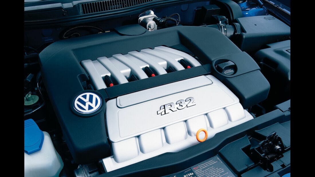Das mit einer karierten Flagge geschmückte “R” steht für “Racing”. Die Zahl 32 gibt den Hubraum des Motors an. Der 3,2-Liter-Sechszylinder ist nach wie vor das Basisaggregat des Luxusliners Phaeton und treibt den kompakten Golf zu wahren Höchstleistungen an. Dank modernster Vierventiltechnik und vollvariabler Nockenwellensteuerung leistet er 241 PS und entwickelt sein maximales Drehmoment von 320 Nm bereits ab 2.800 U/min. Serienmäßig hat VW das Aggregat an ein Sechsgang-Getriebe angeflanscht; das 6-Gang-DSG wurde erst 2003 in die Optionsliste aufgenommen. Immer mit an Bord war der Allradantrieb 4Motion, der die Motorkraft über eine Haldex-Kupplung steuert.