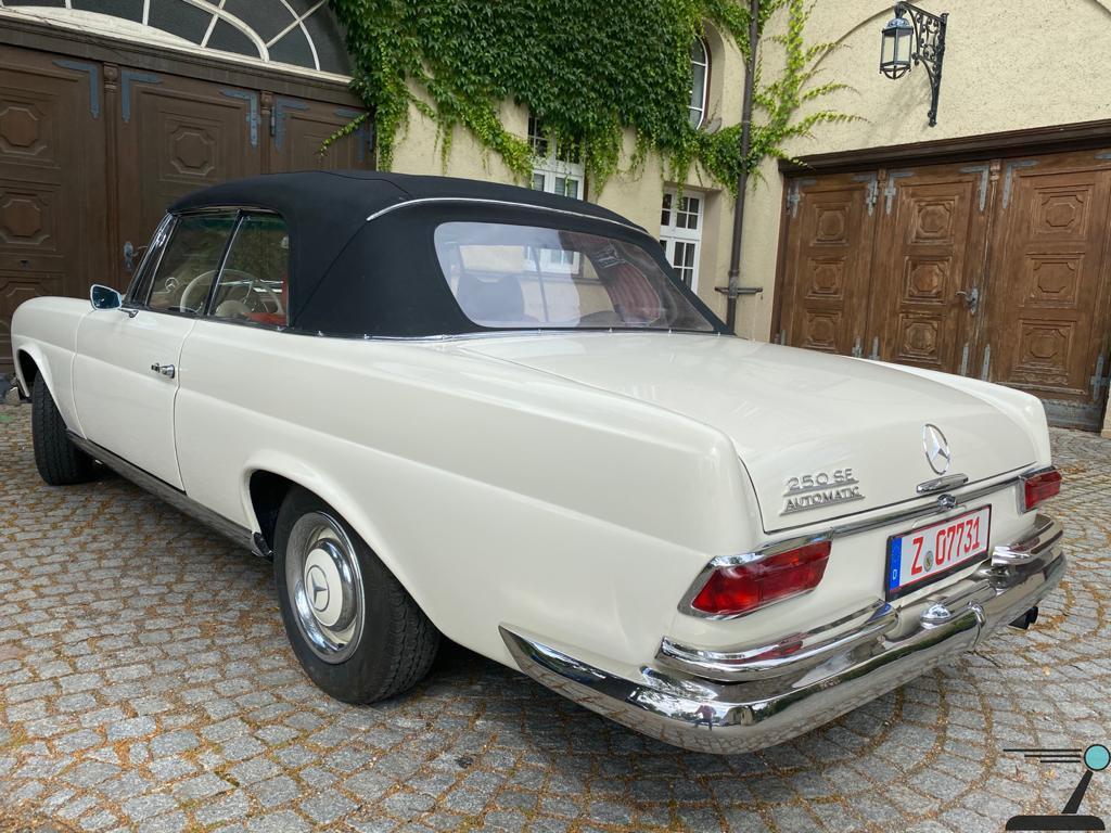 an und in Stuttgart-Sindelfingen wird ein weißes 250 SE Cabriolet -größtenteils in Handarbeit- hergestellt.