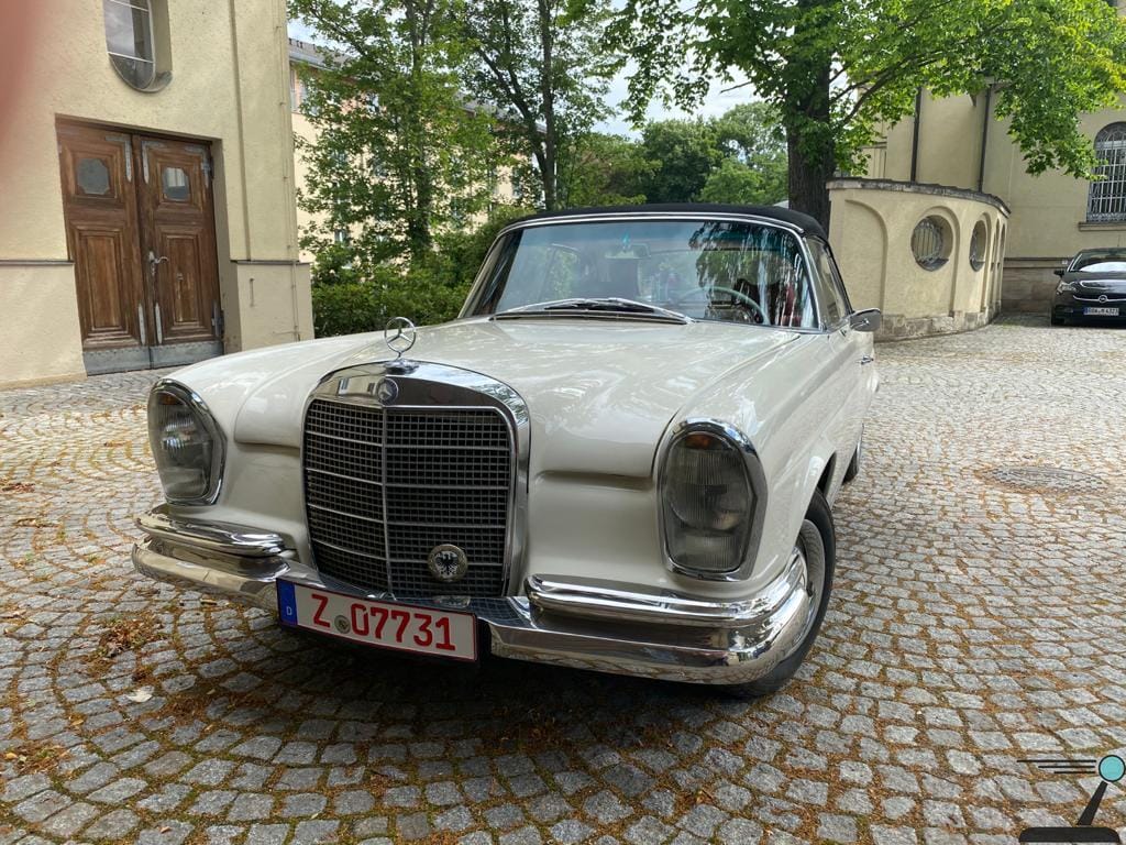 Rotes Leder (Ausstattungs-Code 204), wie nur Mercedes es verarbeitet, wird kombiniert mit schwarzem Verdeckstoff und einem elfenbeinfarbenen Lenkrad mit Automatikwählhebel. Perfekt wird diese optische Symphonie durch edelste Chromelemente und ein handgefertigtes Echtholz- Palisander Armaturenbrett. Auch akustisch eine reine Freude gibt einem der Wagen ein beruhigendes Gefühl beim satten Türzuschlagen und beim Lauschen auf den 150 PS- starken Sechszylinder, der auch im heutigen Straßenverkehr jeder Herausforderung gewachsen ist.