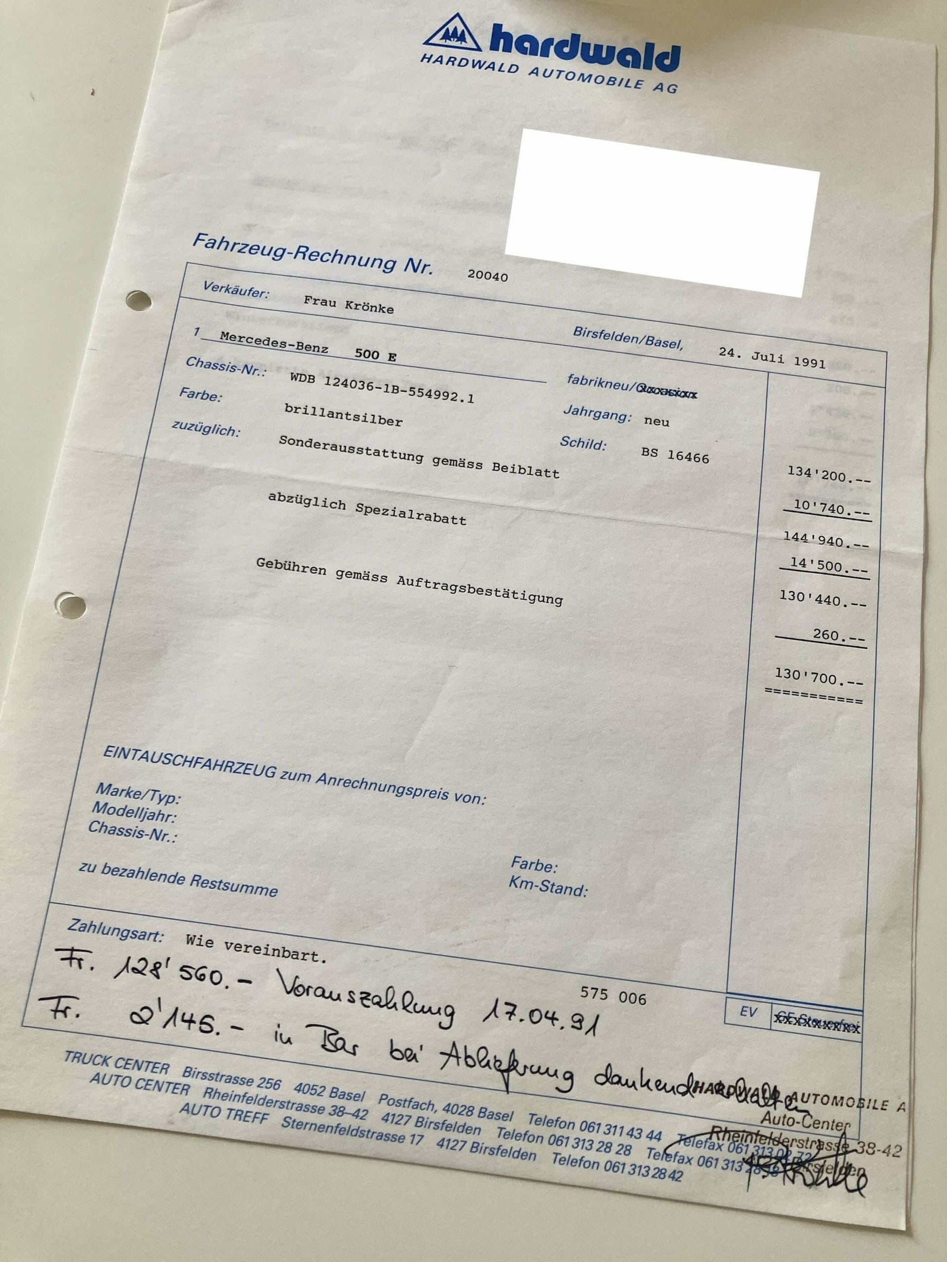 Der Kauf und Import wurde durch den Mercedes Benz Händler “Hardwald Automobile AG” abgewickelt.