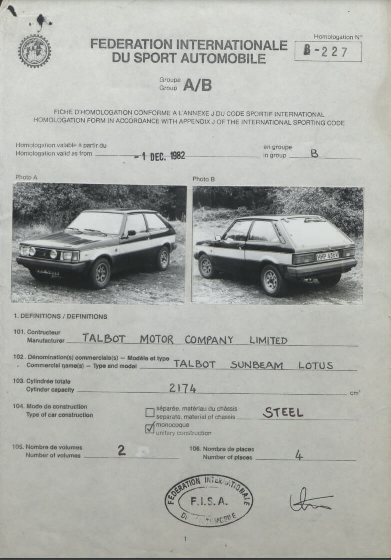 Dieser Talbot Sunbeam Lotus wurde vom jetzigen Besitzer gekauft und zu einem Gruppe B homologierten, FIA B-227 spezifizierten Rallyefahrzeug umgebaut.