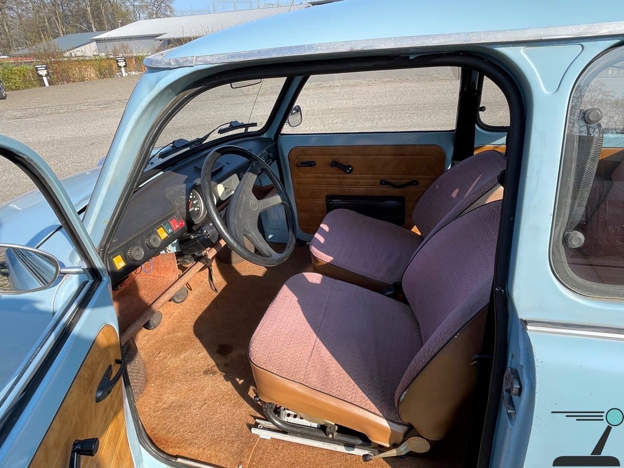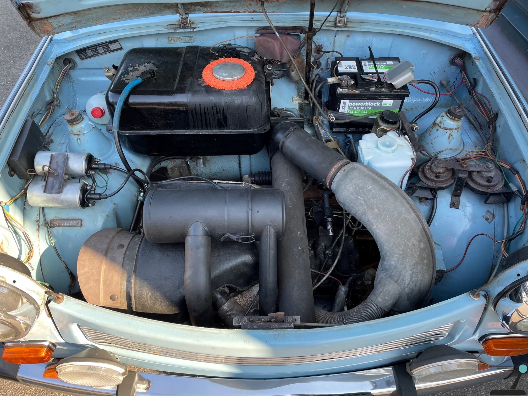 Bis auf die Rückleuchten ist der 601 komplett original. Original Rücklichter sind dabei, aber im Moment nicht montiert. Ob dieser s de luxe, welcher sich meistens durch sein farblich unterschiedliches Dach outete, schonmal einem Lackierer begegnet ist, ist leider nicht überliefert. Jedenfalls ist das Dach genauso Blau wie der Rest.