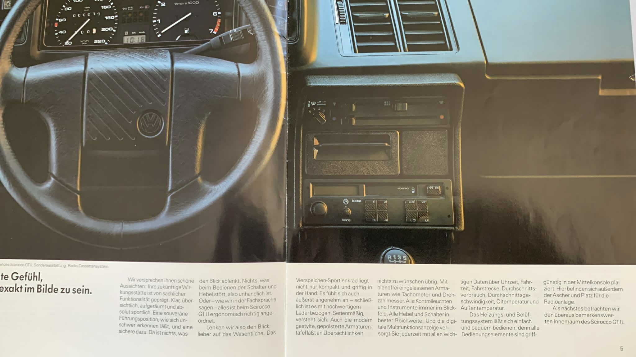 Dieser Scirocco GT ist aus 1. Hand, inklusive Neufahrzeugrechnung und Bestellung von 1990. Originalzustand, nichts verändert. Lediglich die Hutablage wurde mit Kunstleder bezogen, darunter befinden sich aber keine Löcher oder ähnliches.
