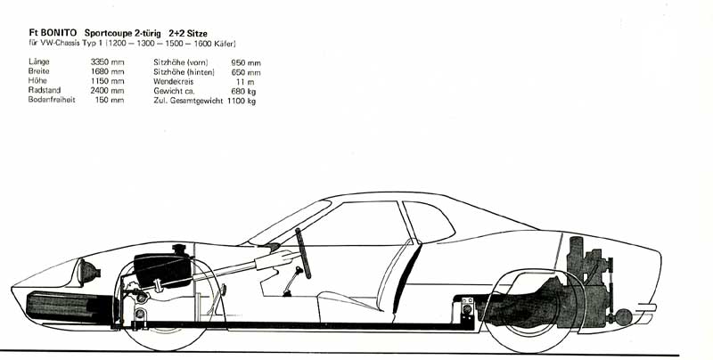 Der Hersteller stellte den Fiberfab Bonito erstmals im September 1969 auf der Frankfurter IAA der Öffentlichkeit vor. Der Wagen war ein formal gut gestaltetes 2+2-sitziges Sportcoupé mit flacher Front, niedriger Gürtellinie und abgesetztem Heck auf dem Fahrgestell und mit dem Motor des VW-Käfers. Optisch entsprach der Bonito den damals gängigen Vorstellungen von einem rassigen Sportwagen.
