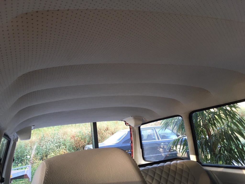 So or is this a truly exceptional vehicle of its kind, as this large VW, unlike most of its peers, was ordered in a really sparse trim level. No trim, no wheel arch chrome, no rear vent windows suggest a 412E model, whereas the complete headliner would suggest an LE.